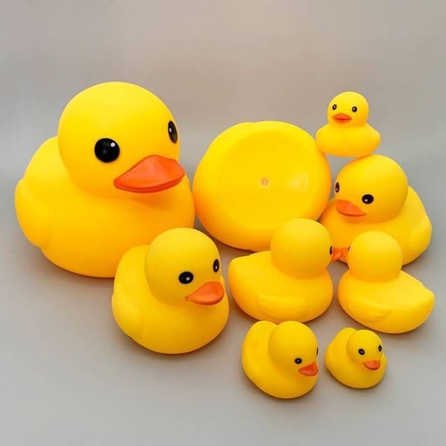 拿着小黄鸭在小孩面前捏了几下