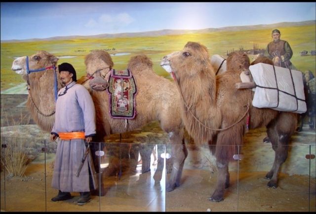 一峰峰骆驼,在大漠的孤烟中慢慢移动着身影,像小舟在大海里航行。