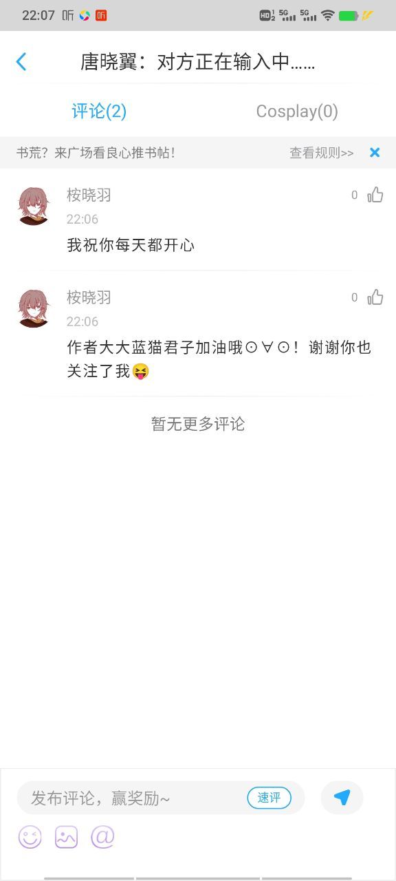 作者小羽咳咳,love唐安的蓝猫君子,谢谢啦😝😍😘谢谢你关注我,我也会关注你,你是第一个对我这么好的人,我小号没了,说了个解释,当时我害怕你们都不相信我,没想到你还是相信我,非常谢谢👍😘