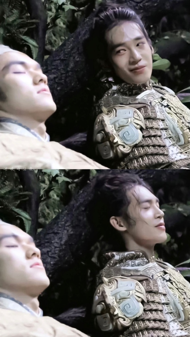 九年看到他累的睡着了,就脱下外衣给他盖上