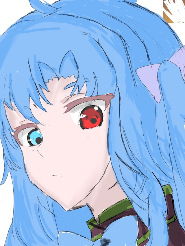 一个坐在椅子上面的蓝发少女出现在米迦面前