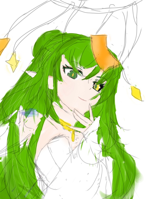 面前站着一个绿色头发的女孩子