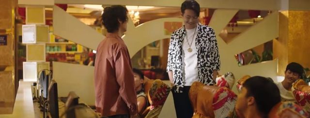 鹏哥瞥一眼旁边的人,手上带着金链子的手指着面前的肖枫