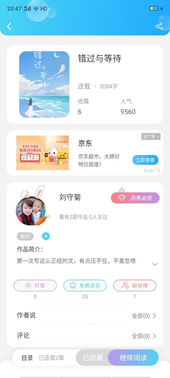 作者可能有人不知道老张是谁,她就是《五个世界两个人》《错过与等待》的作者,别看她网名叫“刘守菊”,其实她姓张。