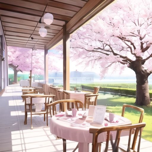 王默(人类)开动吧!(一边吃的蛋糕,一边欣赏着前面的樱花树)