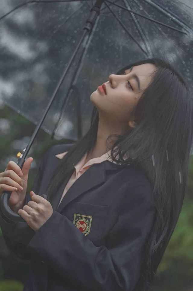 她准备跑回家时,一只拿雨伞的男生过来喊住她,将雨伞递给她。