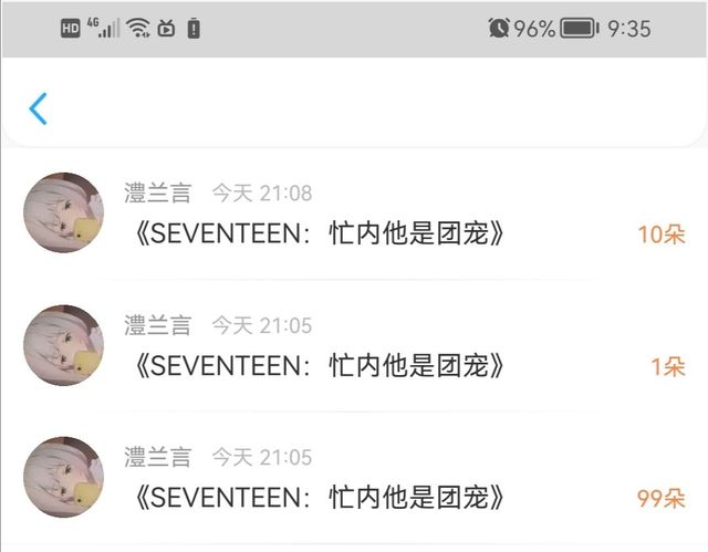 SEVENTEEN感谢澧兰言送出的110朵花花