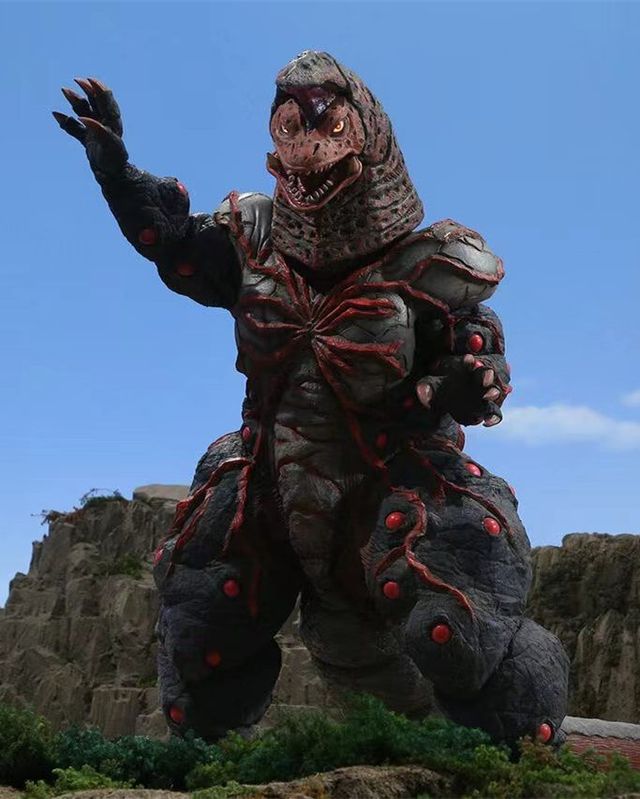 崩塌的小山出现了个巨大豁口,豁口中钻出一只凶猛野兽,体型和小山无异,头部被类似于装甲的东西包裹住,前爪的指甲异常尖锐,身体偏红,全身遍布着岩浆般的纹路,仰起头来长啸一声,响彻天地。