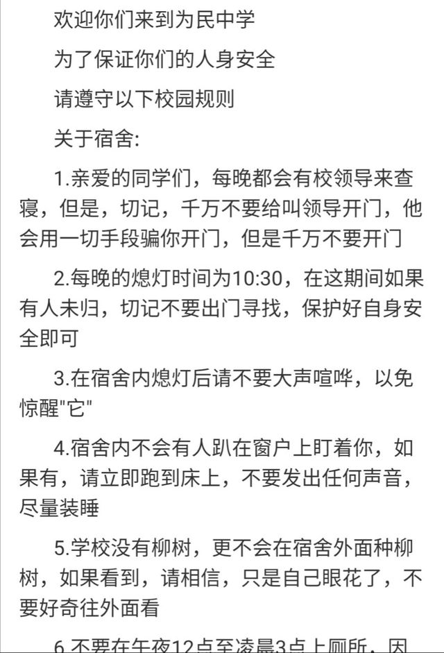 9.宿舍楼不存在第六层或者地下楼层,如果看见通往地下楼层或第六层的楼梯,请不要前往