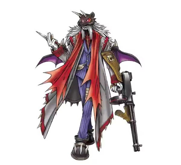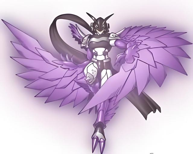 就在这时,徽章终于有了反应,它穿透数码暴龙机,光芒照射在夜鹰兽和阿策身上。最终,他们究极合体进化为渡鸦兽——一只人型数码兽,背后长着一对紫色的数码合金羽翼,全身覆盖着暗紫色的铠甲。