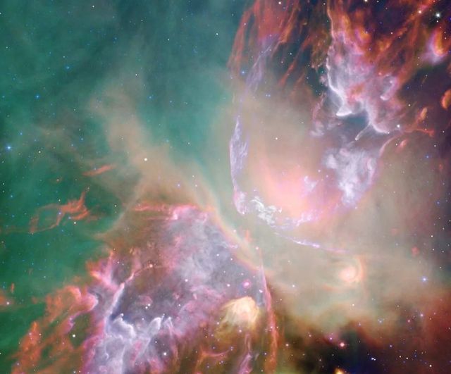 男孩紧闭双眼,忍住剧痛,用心感受着,突然,男海仿佛坠入了一片奇异空间,这是一片星云,好似宇宙无穷,透过这片星云,隐约可见两团黄色的星团。