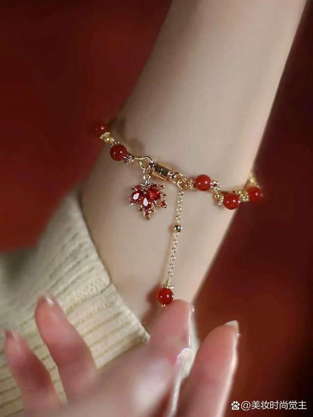 他从怀里拿出来了一个红色的手链,拉起来我的手戴了上去。