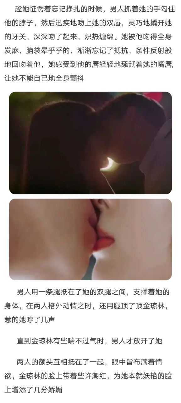 边说他边把手放在了金琼林雪白的天鹅颈上,轻轻的抚摸着,金琼林抓住了他的手,冷笑了一声