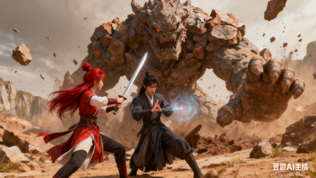 忆如手持单剑,侠气逼人,一步挡在景翊的身前。随着大地的震动加剧,一只由岩石构成的巨大怪物破土而出!忆如和景翊都大吃一惊,连忙后退。