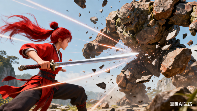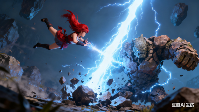 忆如使出林家剑法,与岩石怪激烈交战,剑光如练,将其打得支离破碎。但石块很快又聚合在一起,发起了猛烈的攻击。忆如身形轻盈,躲过一次次凶狠的攻势,终于找到机会,一剑刺中要害,五灵仙术的雷咒将岩石怪彻底摧毁。