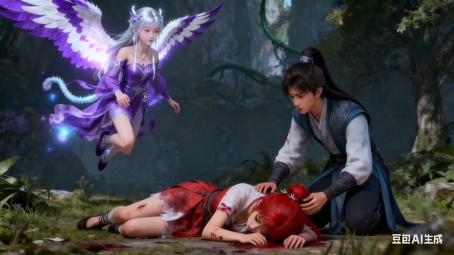 忆如受伤倒地,景翊焦急万分,此时,五毒兽阿紫飞来,化作一位银光闪闪的少女,她约莫十六岁,素颜洁净,紫衣飘逸,清新秀丽,背后长着一对紫白相间的翅膀,柔弱而惹人爱怜。