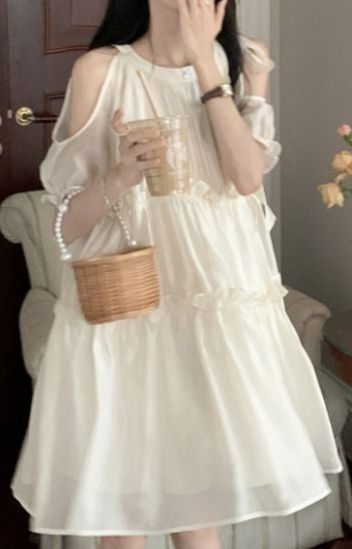 你换了一条白色露肩的裙子跟花灵龙一起走出房间出了院子,你拉着花灵龙的手来回甩