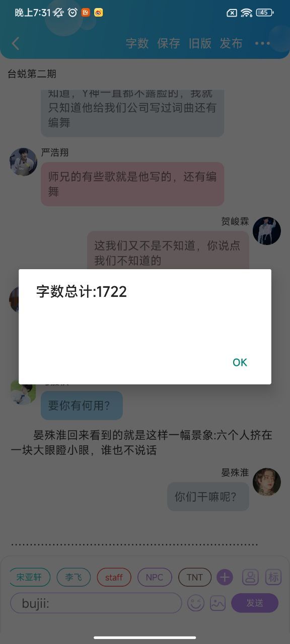 NPC你曾经站在舞台上的感觉是在闪闪发光的,但是现在我感觉你的自信没有了,虽然各方面的表演都很完美,但是感觉是没有灵魂的。我知道你这两年因为一些事情放弃了舞台,我也了解你的实力,既然已经决定回来了,就感觉找回以前那个状态好吗?我希望下次看到的晏殊淮是自信的,发光的。(韩)