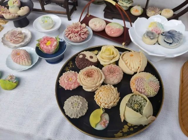 林艺馨今天做了,藕粉桂花糖糕,马蹄糕,驴打滚,豌豆黄,茯苓糕,凤梨酥,还做了一些唐果子