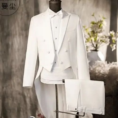 男孩穿着白色燕尾服,衬得他本就精致的身材更迷人了