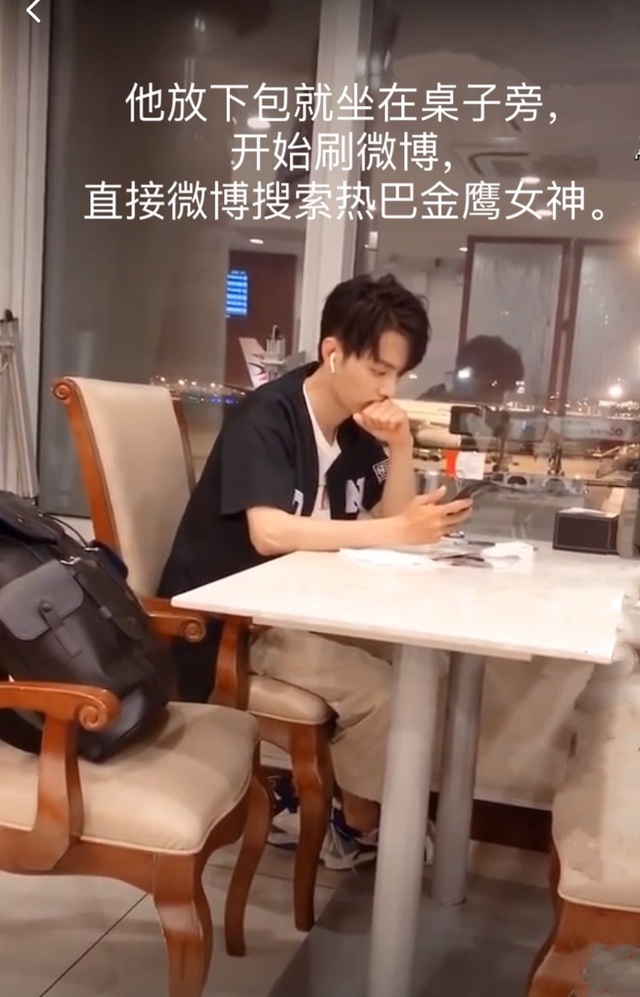 当天杂志拍摄结束后,已是半夜,肖战一回酒店,放下包就坐在桌子旁,开始刷微博,他直接搜索热巴金鹰女神,挑了个较长的片段,带上耳机开始看(因为是半夜肖战怕酒店隔音不好打扰别人睡觉,就带上耳机)。