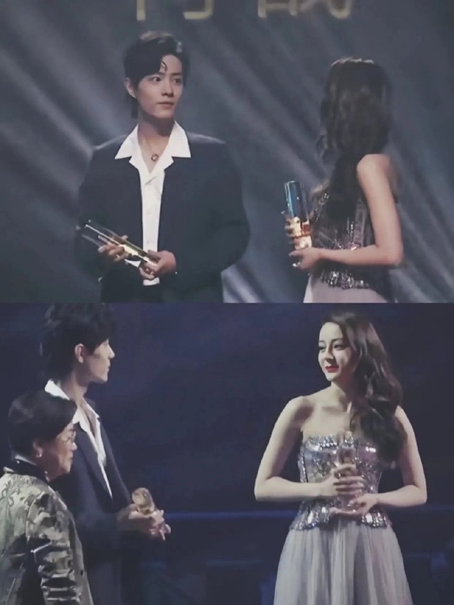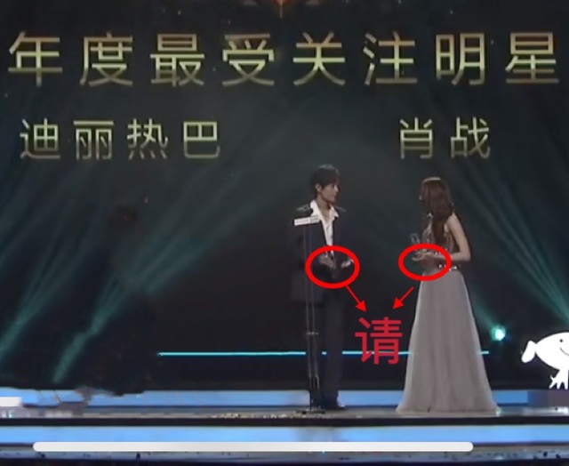 主持人恭喜,有请迪丽热巴,有请肖战上台接受荣誉。