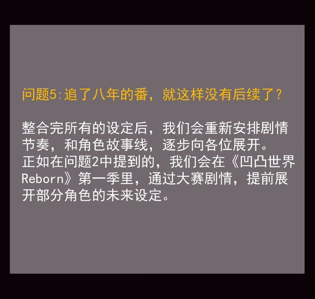 作者大大不过,就像上面官方所说的,我们也该慢慢接受这个现实,期待最新作品。而且,第五季还是会更的。