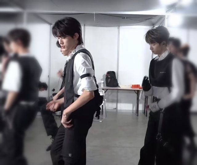换完衣服后,他们按照那几天排练的一样,来一个化妆室版的,先是宋亚轩的part的,轮到谁唱的时候谁就站C位