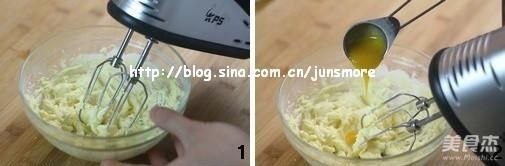 首先制作派皮。黄油软化后,加入糖粉,用打蛋器打发至体积蓬松,颜色变浅;倒入半个蛋黄,继续打发至蛋黄与黄油完全混合均匀