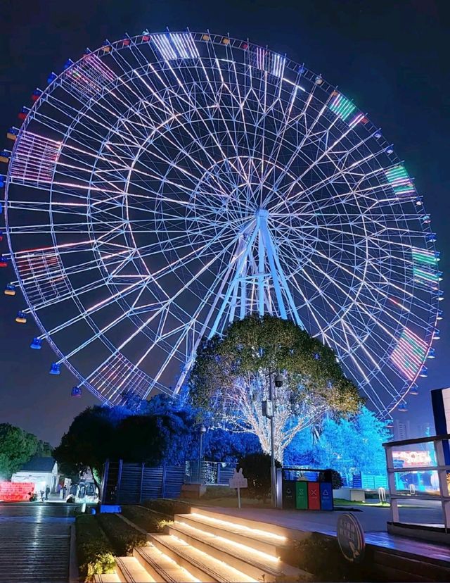 夜晚的摩天轮在闪闪发光,映衬这星空,很是美丽迷人
