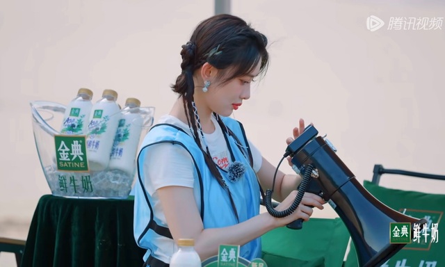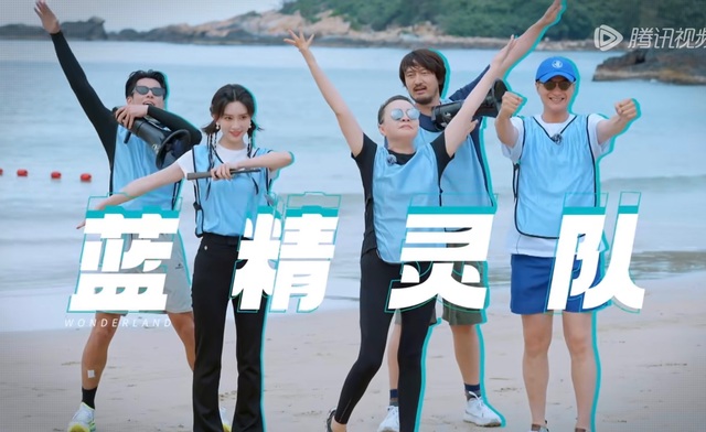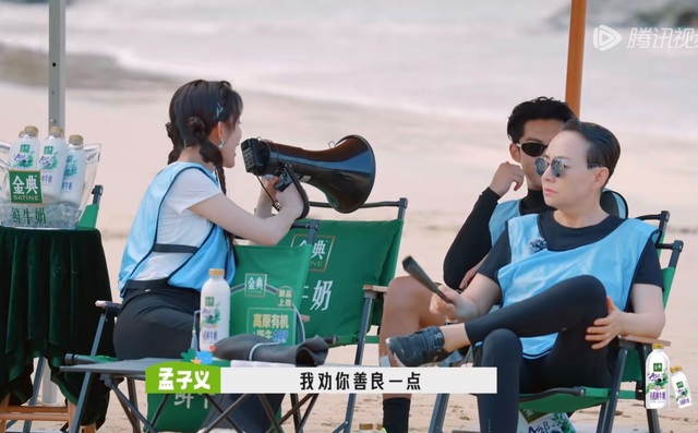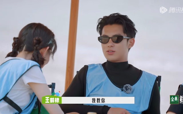 经过两轮的比拼,蓝队领先,王鹤棣看到孟子义待在伞下面,忍不住过去逗她