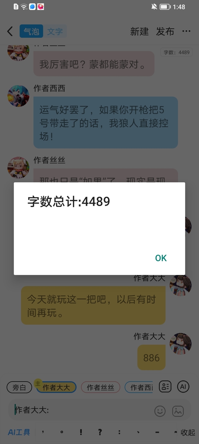 作者大大我这才玩了一把狼人杀,直接干到4000字了。
