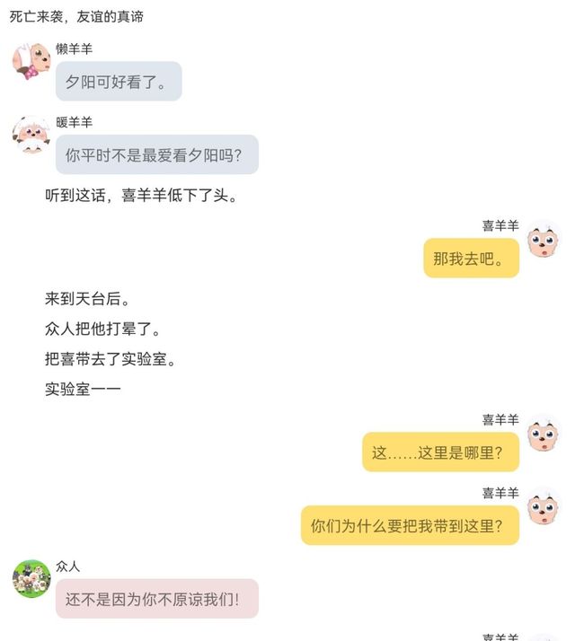 众羊面面相觑,不知如何回答,沉默了好一会儿,刚进门的梦羊羊才开口。她拉着众羊的手,欢快活跃地说道:“这是守护者队,我们是从另一个时空来的,所以不是你认识的那个守护者队。”