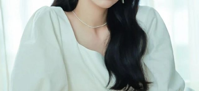 浅白色的连衣裙简约大方,勾勒出完美的肩颈线,黑藻般的碎发散落……