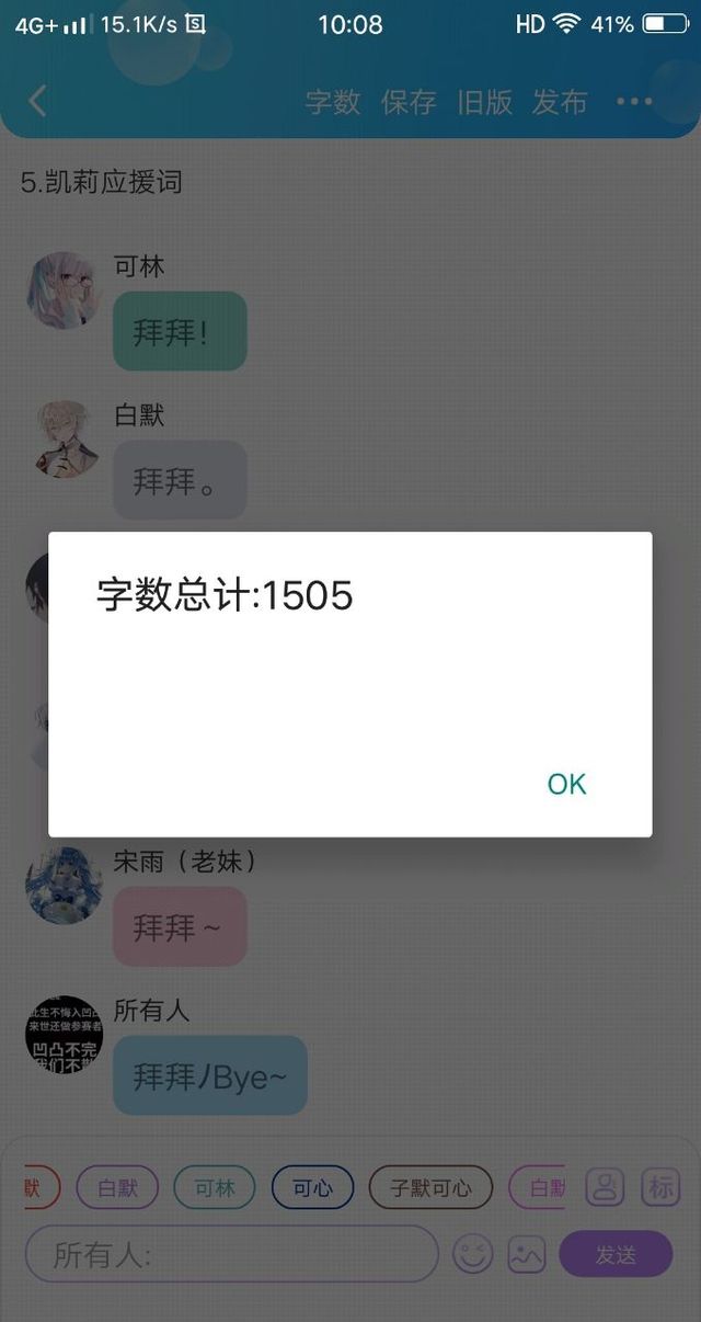 白默可林今天啊我准备更凯莉的应援词。