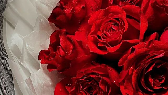宋时念被突如其来的一大束花惊了一下,她怀里抱着那一大束火红的过于艳丽的玫瑰花,嘴角微抽,看都能看出来她的无语: