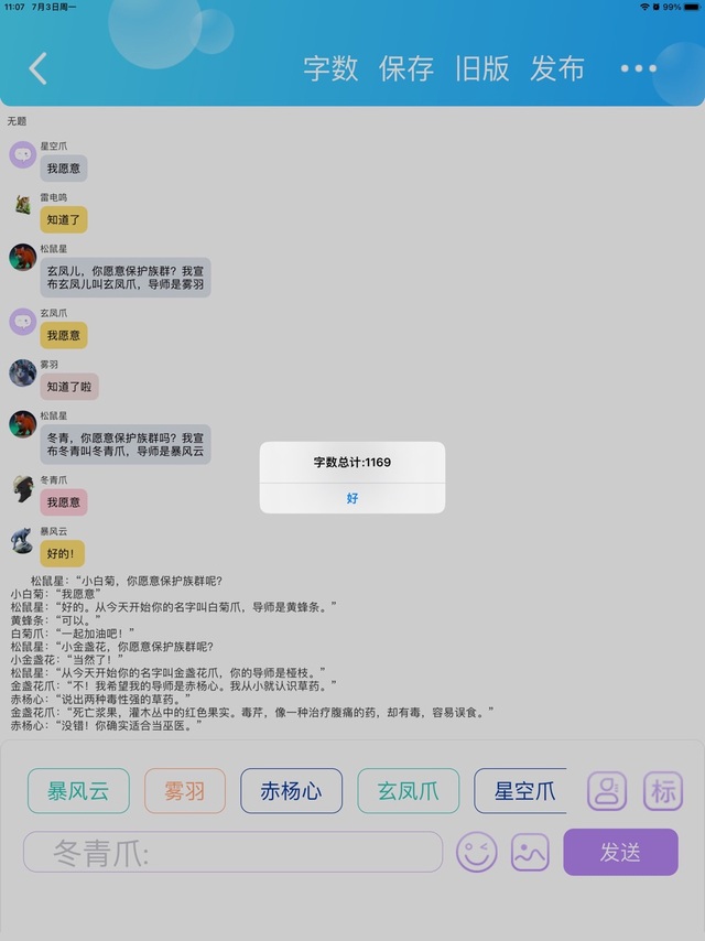 松鼠星星云,你愿意保护族群吗?我宣布星云叫星空爪,导师是雷电鸣