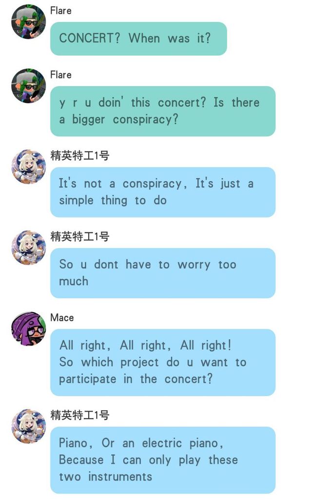 玛丽娜看来我的小愿望要破灭了,原本还想和九号特工一起进行音乐会呢…