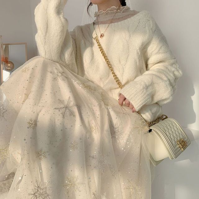 今天的尹笑薇穿的倒是很保守,但不知道是不是她和刘亦菲心有灵犀,今天居然撞衫了,只不过刘亦菲穿的是肉粉色款,尹笑薇穿的是白色款,她们的上身都是一件毛绒款式的长领毛衣,下身是长款的纱裙,诠释的感觉也不一样。刘亦菲身上总会带有一种成功女士的凌厉感,而尹笑薇则是少女般的梦幻。