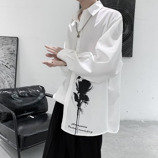 此时此刻,柳星燃又梳了一下他那万年不变的韩式蓬松碎盖三七分发型,衣服也只是穿了一套简单的白色蓬松款衬衫和一黑色裤子,衬衫上的右下角印着水墨图案,脖子上的那个银色项链,柳星燃一直都戴着。