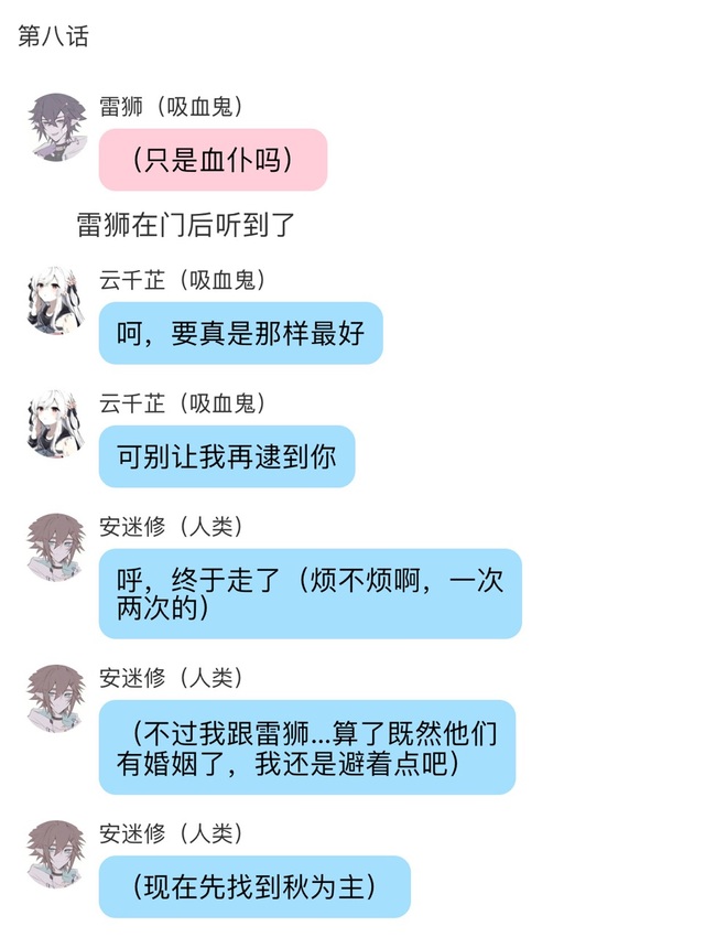 秋(人类)嗯对,我确实有想过出去的办法,可是试了好几次都没能逃出去,要不是雷伊在我可能就不只是被锁起来这么简单了