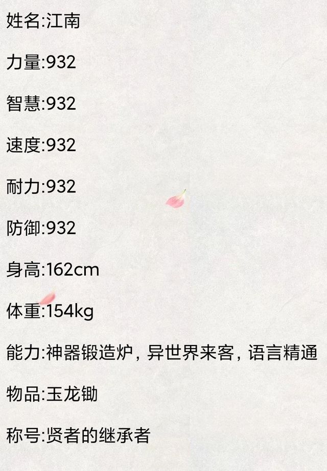 江南(说完将build的面板数值与使用方法输入了进去)