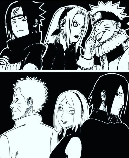 佐助(眼睛注视前方,遮住佐良娜)鸣人!