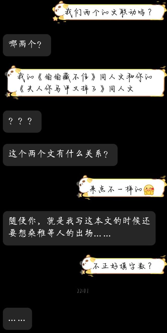 唐墨宁没有想到我写的《夫人》同人文会与《偷偷藏不住》同人文联动唉!不过我写这个文的时候,要想桑稚和顾白泽的出场了,真的很伤心。