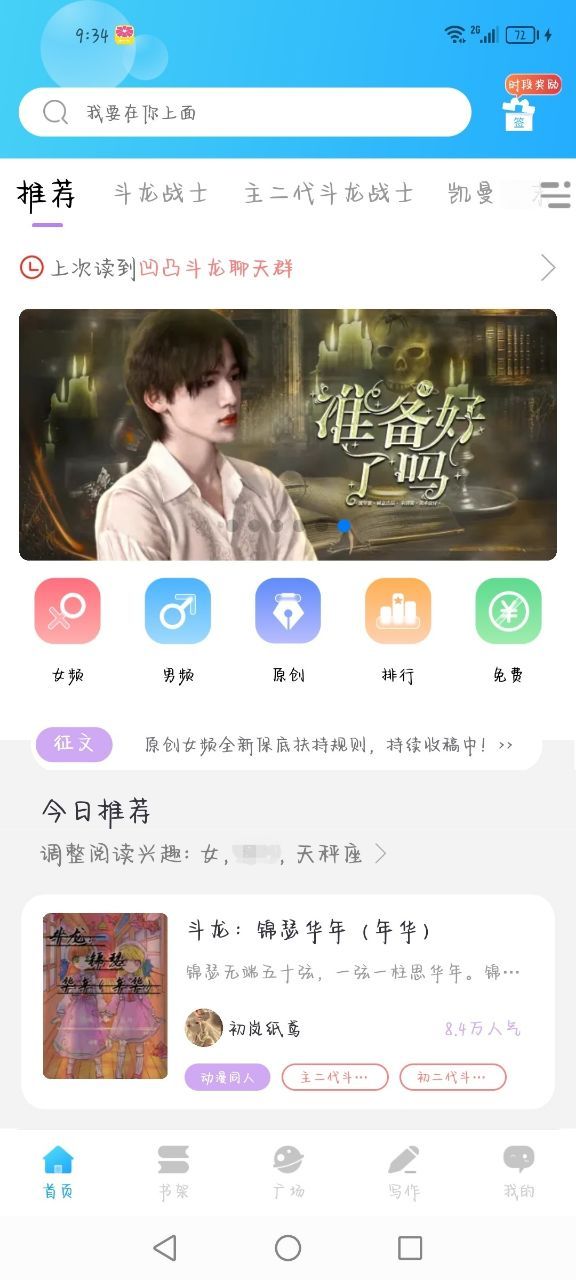 初岚纸鸢酱酱,聪明又可爱的小作者又来更新了,也是上今日推荐了呀