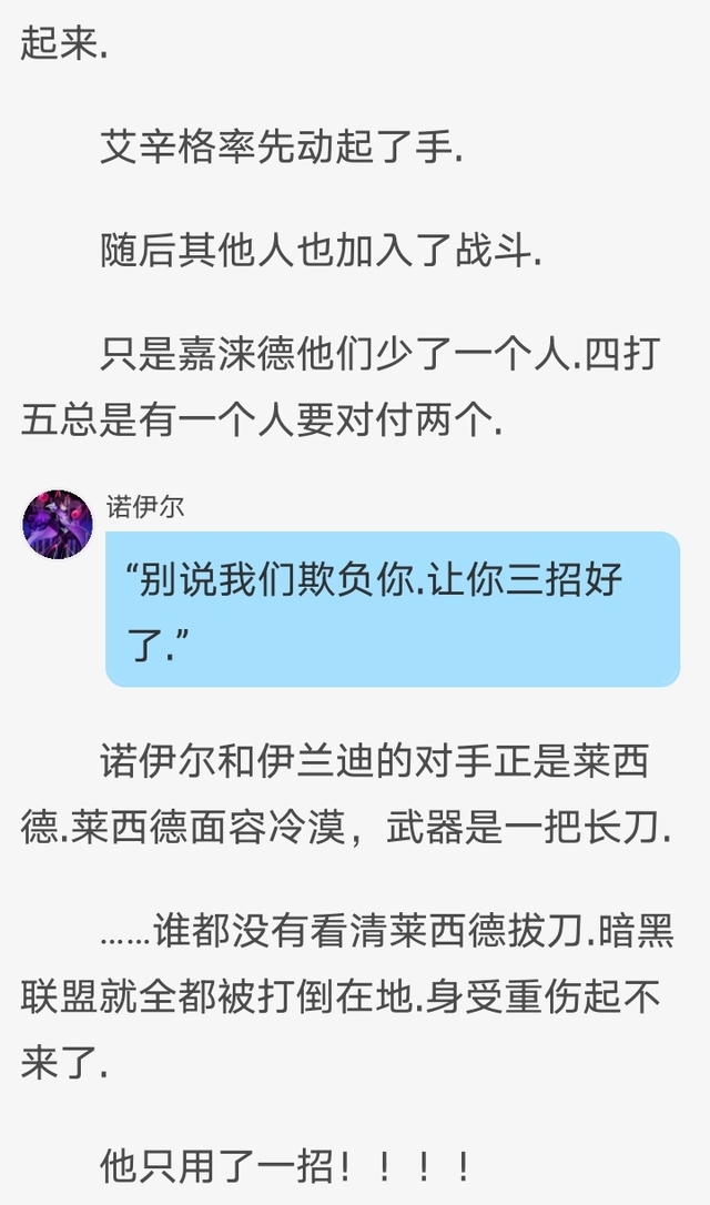 嘉涞德“真是找死.就连我们伊佐将军都做不到抗过莱西德三招.你们还大言不惭说要让莱西德三招?”