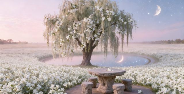 九黎走在前面,洛妍跟在身后。穿过空间之门,洛妍一下就被眼前的景色所征服。放眼望去,是一片茉莉花海,巨大的树屹立于中央,一弯月牙似的湖紧挨在树旁,树下摆放着石桌石椅。