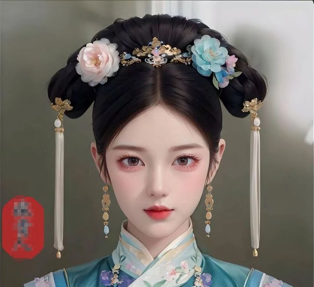 而安阳穿的一件蓝绿色的旗装,旗头也是简单却不失身份。