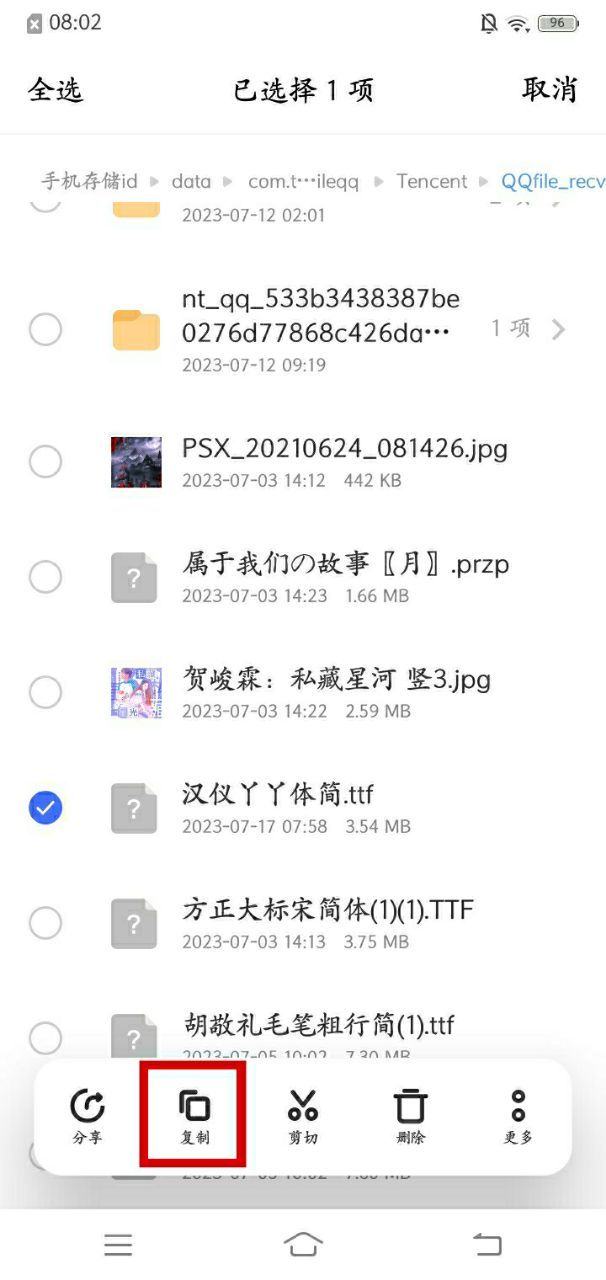 回到故事会复制下载好的字体。(如果能直接在文件管理里找到,也可以直接弄,反正怎么简单、方便怎么来。)