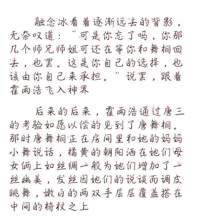 霍雨浩在打败帝天之后就马不停蹄的前往神界。走前,融念冰向霍雨浩似是不忍心幽幽道:“雨浩,你真的要去神界吗?或许那里并不是你想象的那么美好”霍雨浩顿了顿,在空中转身看向自己的师傅,搭肩的冰蓝色长发因风而舞动,发丝抚过脸庞,在空中以夕阳为舞台以风为舞伴。身上的神装好像也迎着风迎着朝阳唱呜。蕴含着星辰大海般的蓝眸里是融念冰已经失去了的坚定,下足自信的点头表示肯定。随后向通往神界的大门飞去